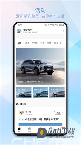 提供最新奇瑞资讯、详尽用车指南及热门车友活动,用户可随时浏览官方动态,一键获取各类信息。