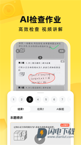 3、便捷作业检查:学习难题或家长检查作业时,一键智能批改,提供详细解析,轻松掌握对错。