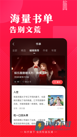 涵盖180+种类和几十万本优质故事,用户可以畅读近130000+本知乎互通的电子书。