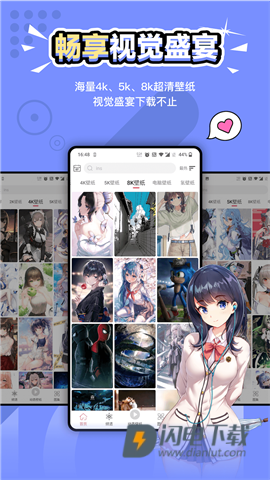 1、这里拥有专属的二次元壁纸库,量大质优,精美二次元壁纸随你挑选,快来感受吧。