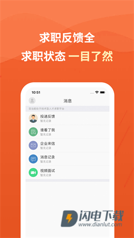 4、实时消息提醒,第一时间通知用户职位面试邀请或入职信息。