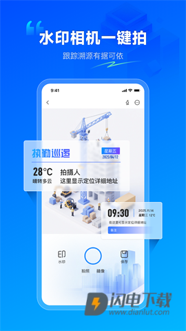 内置专业水印相机,拍摄时自动附加时间、定位、项目等关键信息,确保现场照片与验收凭证的真实性与可追溯性,杜绝数据造假,为管理决策提供坚实的数据支持。