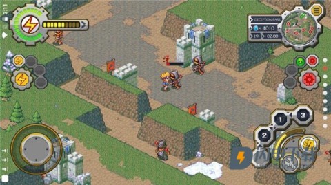 2、将塔防策略和动作RPG完美融合,需建造防御工事(如炮塔、陷阱)并通过策略应对敌人攻击,同时操控主角洛克进行即时战斗。