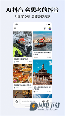 2、用AI去刷抖音,海量内容围绕你的兴趣展开。你想了解的,下一秒就能看到高质量的内容。