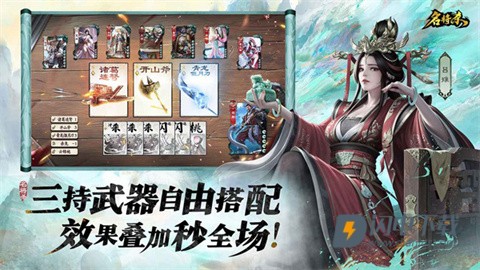 2、丰富多样的装备武器卡牌,每位名将都能自由搭配三种武器,帮助你瞬间提升实力,打造出最强的战斗角色。