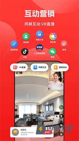 4、全景分享:完成的全景作品可一键分享至微信、朋友圈、抖音、微博、装修圈等主流平台,同时支持转换为全景视频格式。
