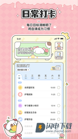 用户可以将待办事项全部记录下来,并获得小奶狗卡卡,系统会自动生成清晰的待办清单,确保每日目标明确。当设定好时间后,还会及时发送提醒,让你不错过每一个目标!