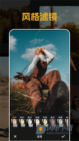 3、支持日出、日落、复古等多种风格滤镜,用户可以轻松为照片增添艺术效果,创造出精致的大片感觉。