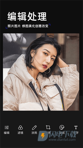 2、从导入图片到使用各类功能,都非常直观,支持美颜、滤镜等常用处理,让你轻松上手。