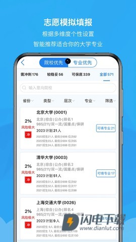 拥有智能评估功能,准确测算各院校的录取概率和风险状况,为你的志愿填报提供坚实的信心支援。