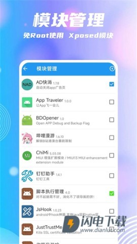 3、Xposed模块的支持,更是让你随心DIY分身,完全个性化你的应用!