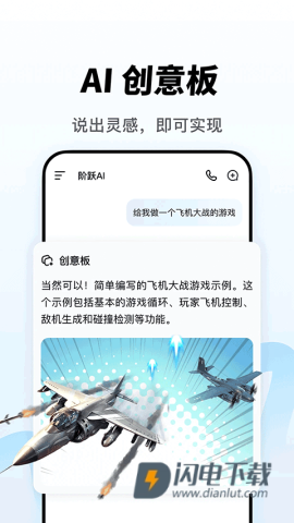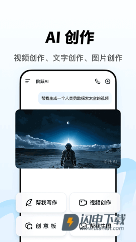 3、不论是AI写作、智能生图、生成视频,还是AI编程,跃问都能满足你在不同领域的创作渴望。