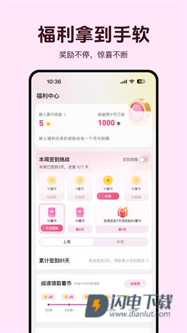 5、丰厚的奖励轻松送到你手中,借此调动你的阅读积极性,给你不一样的乐趣体验!
