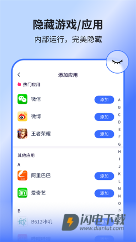 打开隐空间App后,用户只需在首页点击添加应用,便可轻松隐藏不想让他人看到的应用。