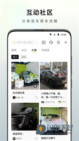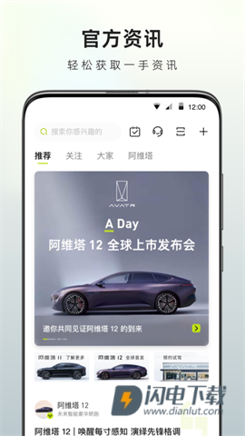 阿维塔app是一款专为阿维塔汽车的车主们打造的全方位的汽车生活服务软件。这款应用不仅提供丰富的官方资讯、社区内容,还有精彩的科技点评,让各具特色的灵魂得以相遇,畅所欲言。用户能够找到新奇的物品,共同探索更好的生活方式。