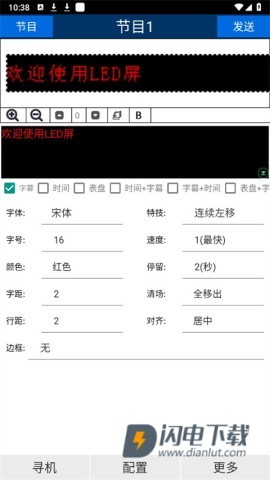 2、加载参数后返回主界面进行文字编辑,设置显示效果,最后点击“发送”进行成功显示。