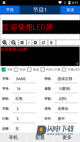 1、若需新增节目,点击左上角的“节目”进入节目界面,选择新建节目,进入主界面进行编辑,和之前的步骤相同,完成后点击发送按钮。