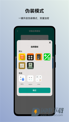 可轻松伪装成“计算器”等常见应用,巧妙保护。