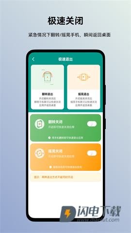 设备面朝下放置或摇晃手机,即可瞬间回到桌面。
