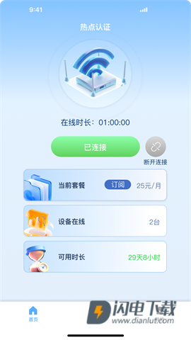 用户还可查看详细的套餐信息,包括费用、剩余时间及连接设备数量等,并直接显示网速,方便用户智能管理手机。热点认证软件智能监测网络,快速拦截病毒,保障上网安全。有兴趣的用户快来下载体验吧!