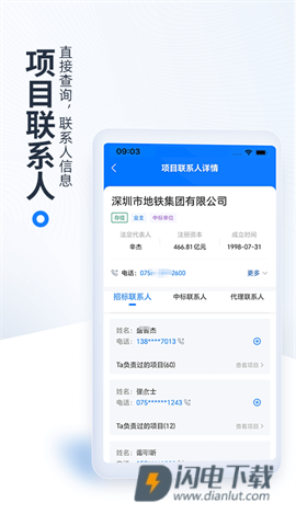 4、联系人信息:集中呈现招标及中标联系人,可以快速联系相关人员,提高信息获取效率。