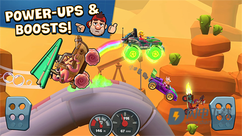 5、赛道上有各种有趣的道具,争取收集并使用它们,它们具有辅助和攻击等多种性质;