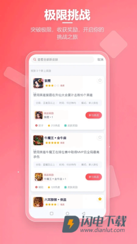 1、这里专为王者荣耀玩家设计,参与挑战任务的同时还能得到各种丰厚的奖励,让你在娱乐的同时提升自己的技术水平。
