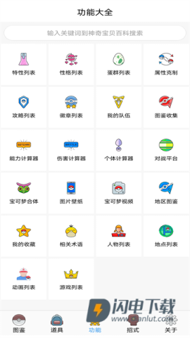 2、全国图鉴里能看到宝可梦的基本信息,道具列表收录所有道具,技能列表包含全部招式,特性列表也把宝可梦的所有特性整理好了,平时查资料基本够用。