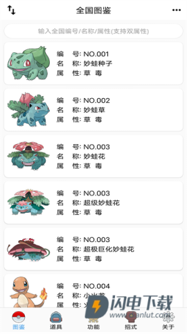 1、全国图鉴:包含宝可梦的基础资料,目前进化链与技能信息还在完善中。