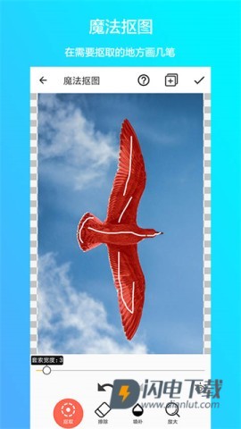 3、魔法抠图则是一键识别的思路,只需要在想抠取的位置画一笔,软件会自动处理,省事不少。