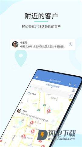 12、查找附近的线索、联系人和客户 - 借助Google地图,可查看附近的线索、联系人和客户位置。