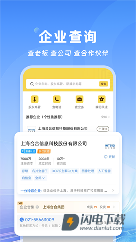 应用提供企业信息查询功能,可查询大量企业工商信用信息,输入企业名称后,就能查看相关资料,帮助用户更快判断合作对象的基础经营情况。