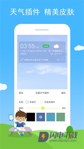 A:可以,天气插件和软件皮肤颜色支持选择,插件还能自定义背景、文字颜色,并可设置透明度。
