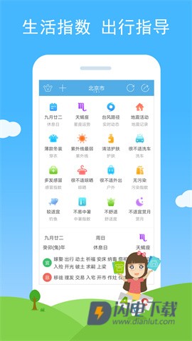 3、生活指数模块也比较齐全,涵盖穿衣、洗车、运动等八大类别,适合拿来做日常参考。