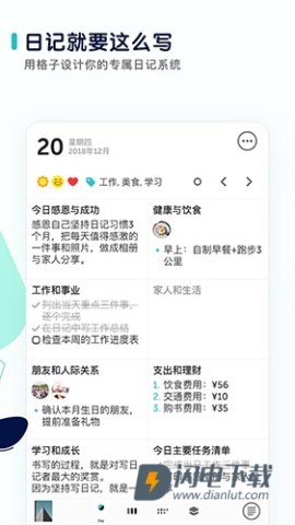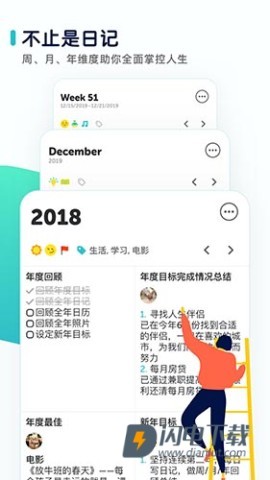 3、软件还把记录、反思、规划这些内容放在一起,日/周/月/年不同维度都能用上,适合想把日记当成习惯管理工具的人。