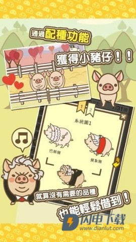 2、通过配种功能,公猪母猪配对后可以生出新品种。会生出什么小猪都可以查看确认,有些猪只能通过配种获得,想收集更多图鉴的话,这一部分不能错过。