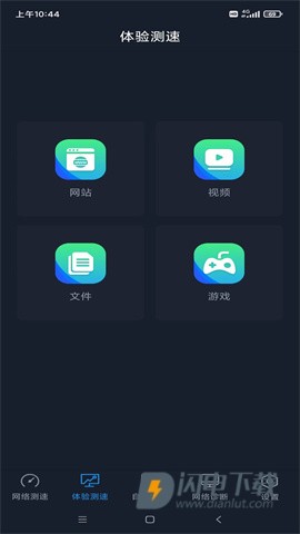 3、在体验式测速功能中,系统将测速场景细分为网站、视频、文件、游戏四大板块,用户可根据自身使用习惯选择对应类别进行针对性网络性能测试。