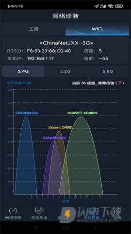 7、WiFi模块可检测当前WiFi信号强度及所用信道,提供专业级的无线网络分析数据。在设置页面中,App最多可保存300条历史测试记录,并支持流量使用上限设置,便于用户精细化管理移动数据消耗。