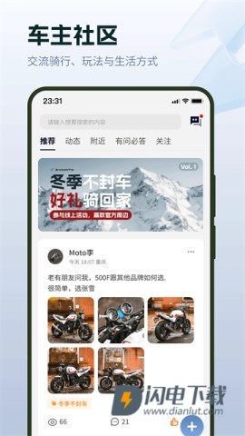 支持发布动态,分享骑行心得,还可发布文字、图片、视频内容。