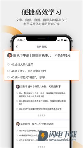 亿企学会是一款面向财税从业者的阅读学习软件,集财税课程、政策资讯、直播答疑、考试题库和模拟考场于一体,适合会计、税务人员及备考用户日常学习与业务进修。软件围绕税务风控、经营隐患、新政解读等场景提供内容支持,用户既可通过视频课程和名家讲堂系统补知识,也能结合真题训练、考试指南和直播互动处理备考难点。其特色在于持续更新财税培训与行业动态内容,并配合多屏互动、学情分析等功能,帮助用户兼顾政策跟进、技能提升和实务判断。