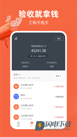 2、业主验收确认后工钱到账,提现流程也比较直接。