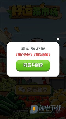 1、首先好运菜市场玩家需要阅读隐私条例并同意以进入游戏。