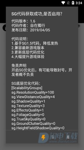 SG代码是基于官方底层模型参数的优化,提升游戏画质,但不建议开启,可能导致封号。
