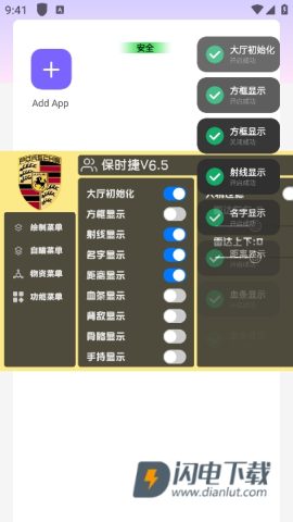 保时捷直装是一款简单、好用的游戏辅助工具,软件支持方框、名字、距离、血条、骨骼、雷达等多种显示内容,也提供自瞄相关菜单,使用时需要配合分身大师一起操作,并先完成无障碍、位置等权限授权。由于软件本身免费且可用性不固定,比较适合想先用小号测试、再自行判断是否继续使用的用户。